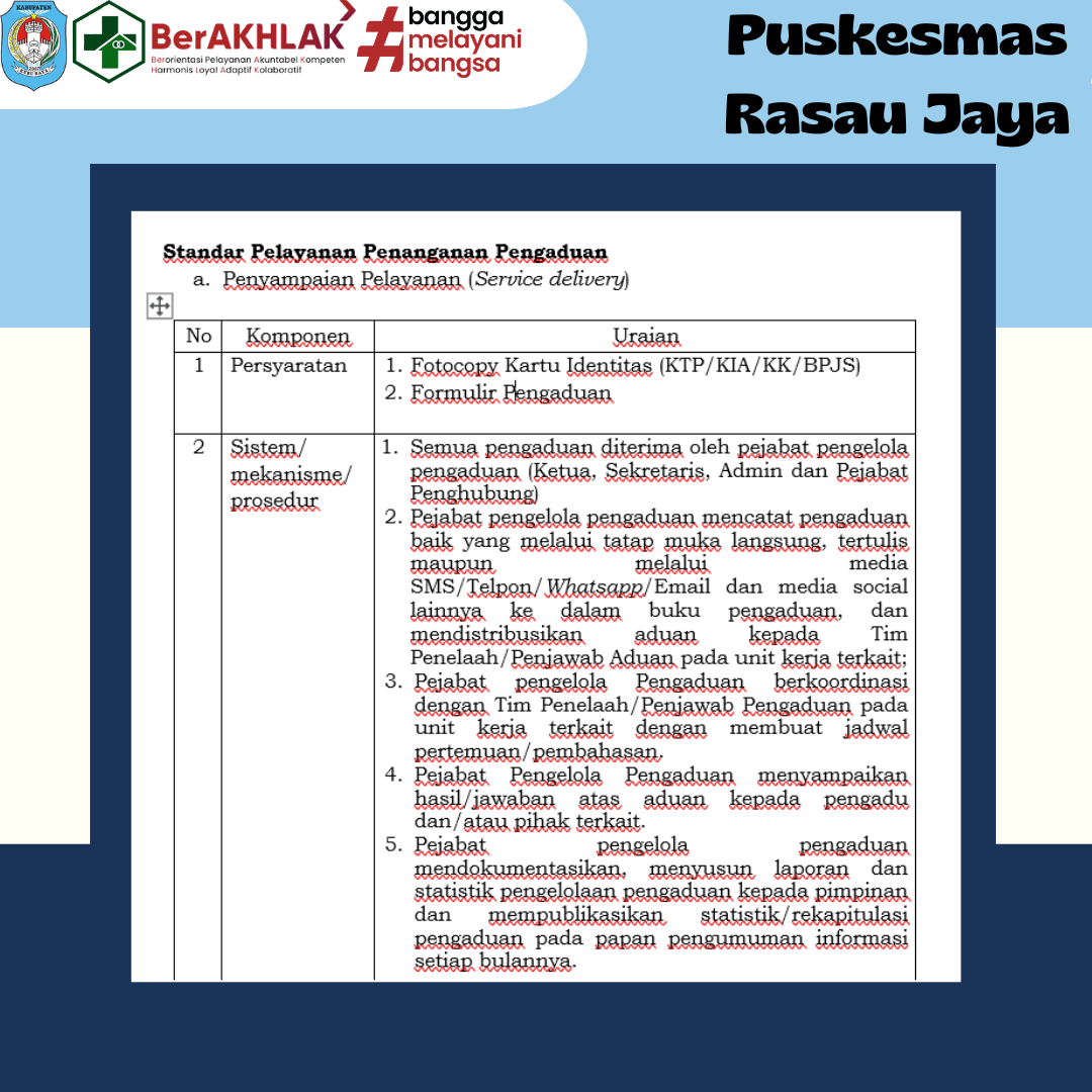 STANDAR PELAYANAN PENANGANAN PENGADUAN